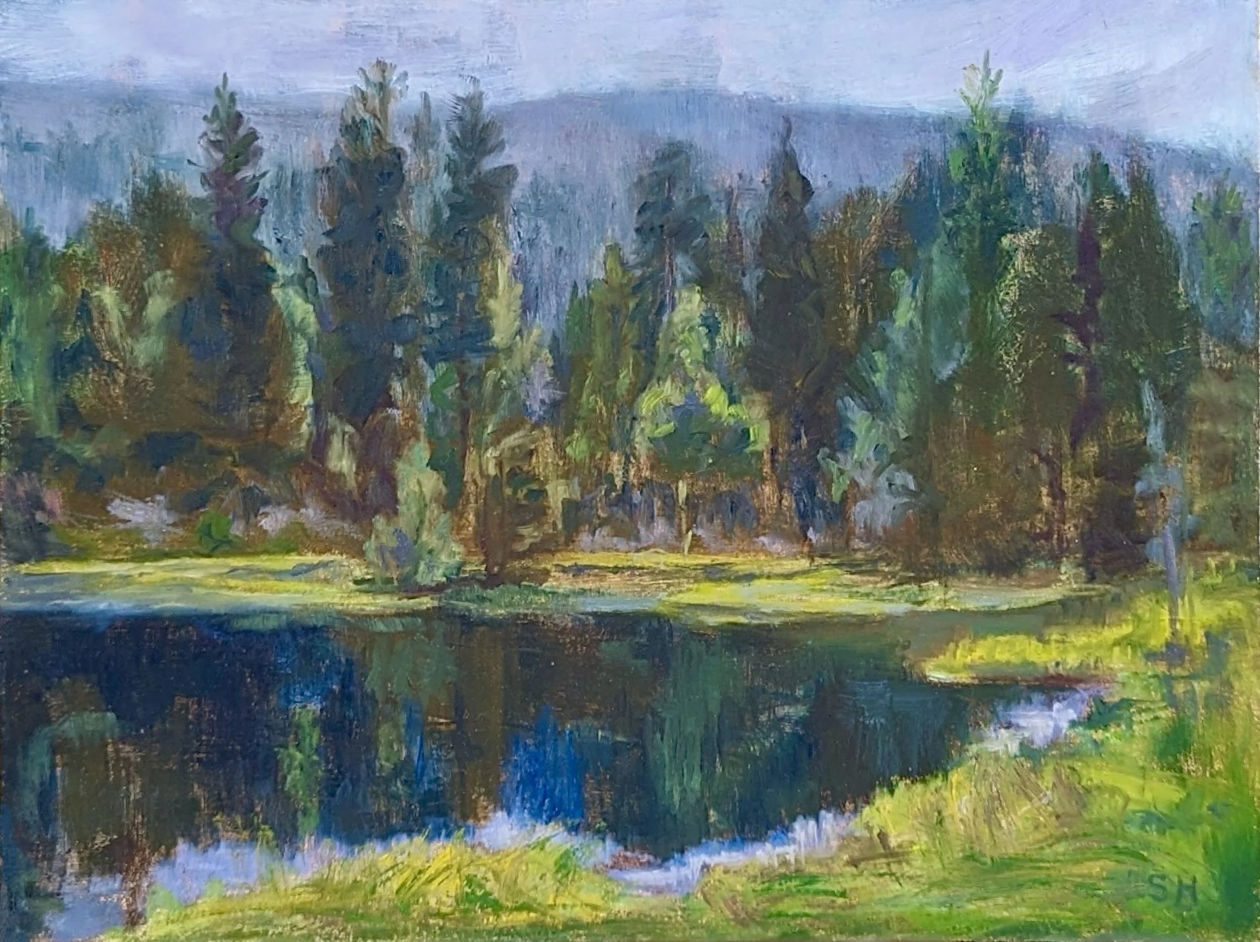 “Doggy Lake, Pinecrest, Whistler BC” brings back wonderful memories of a morning I painted by its shores with a dear friend, also an artist. The two of us painted happily together, sharing the peaceful solitude of this tranquil spot near our cabin.